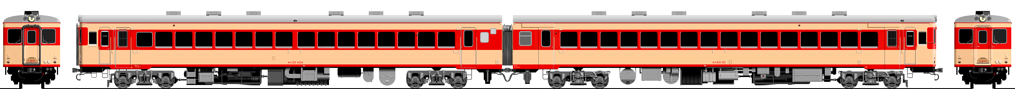 旧国鉄キハ26-101(旧キロ60)+キハ26-400(旧キロ25)